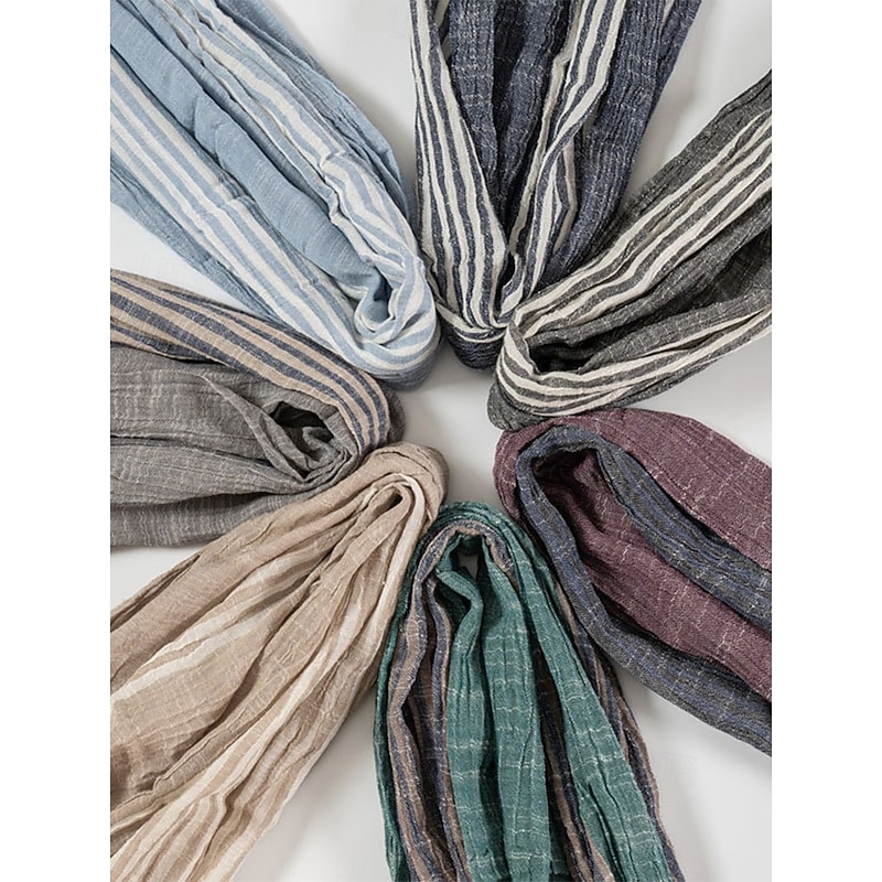 Men's Striped Cotton Scarf – Lightweight Soft Fringed Wrap for Fall & Winter, Casual Vintage Style Shawl for Travel, Daily Wear & Outdoor Activities 29