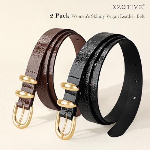 HOT ! XZQTIVE 2 Pack Women's Skinny Leather Belts Ladies 0.78'' Thin Waist Belt for Jeans Dress Pants with Trendy Gold Buckle