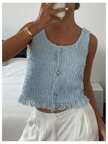 HOT ! GORGLITTER Women's Tweed Button Up Crop Blazer Vest Sleeveless Fringe Business Casual Work Tank Jacket Tops 2025