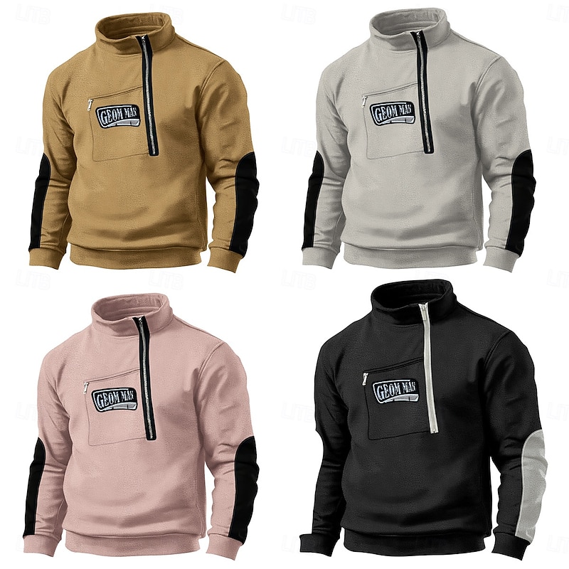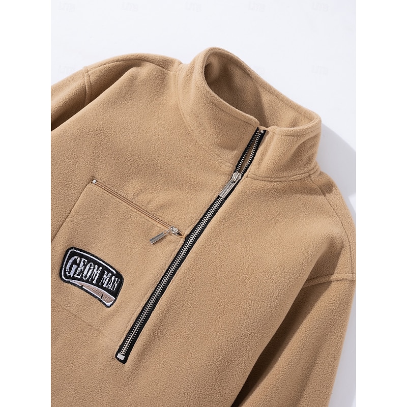 Men's Sweatshirt Polar Fleece Quarter Zip Sweatshirt Tactical Black Pink Khaki Gray Half Zip Plain Sports & Outdoor Daily Holiday Streetwear Cool Retro Winter Spring &  Fall Clothing Apparel Hoodies 4