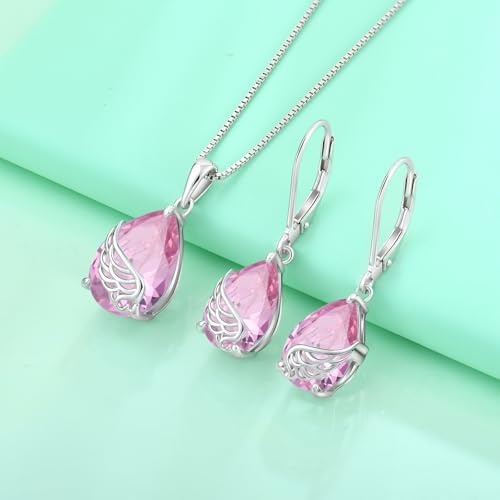Guardian Angel Wings Dangle Drop Earrings 925 Sterling Silver Teardrop Leverback Earrings Birthstone Jewelry Gifts for Women 4