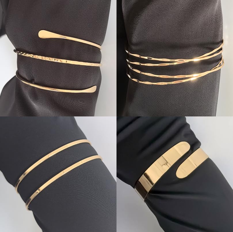 • COMPLETE SET: Package includes 8 pieces of fashionable arm cuff bracelets in gold color
