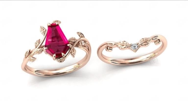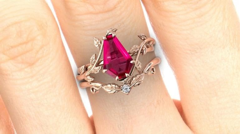 More information about Vintage Red Ruby Engagement Ring Set Anniversary Ring Set For Women Coffin Shaped Art Deco Leaf Style Wedding Ring Set