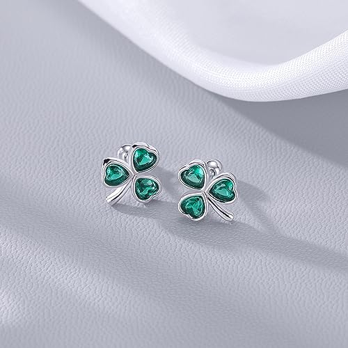 Reffeer Solid 925 Sterling Silver Green CZ Flower Stud Earrings Clover for Women Teen Girls Clover Stud Earrings Shamrock Earrings Green St Patricks Day Earrings Screw Backs (A-Silver) 7