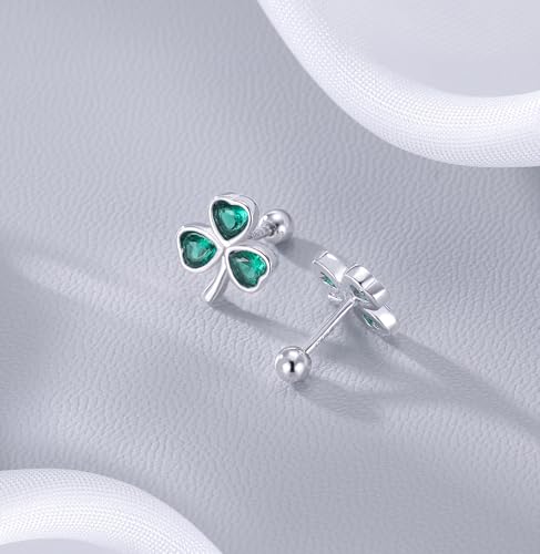Reffeer Solid 925 Sterling Silver Green CZ Flower Stud Earrings Clover for Women Teen Girls Clover Stud Earrings Shamrock Earrings Green St Patricks Day Earrings Screw Backs (A-Silver) 5
