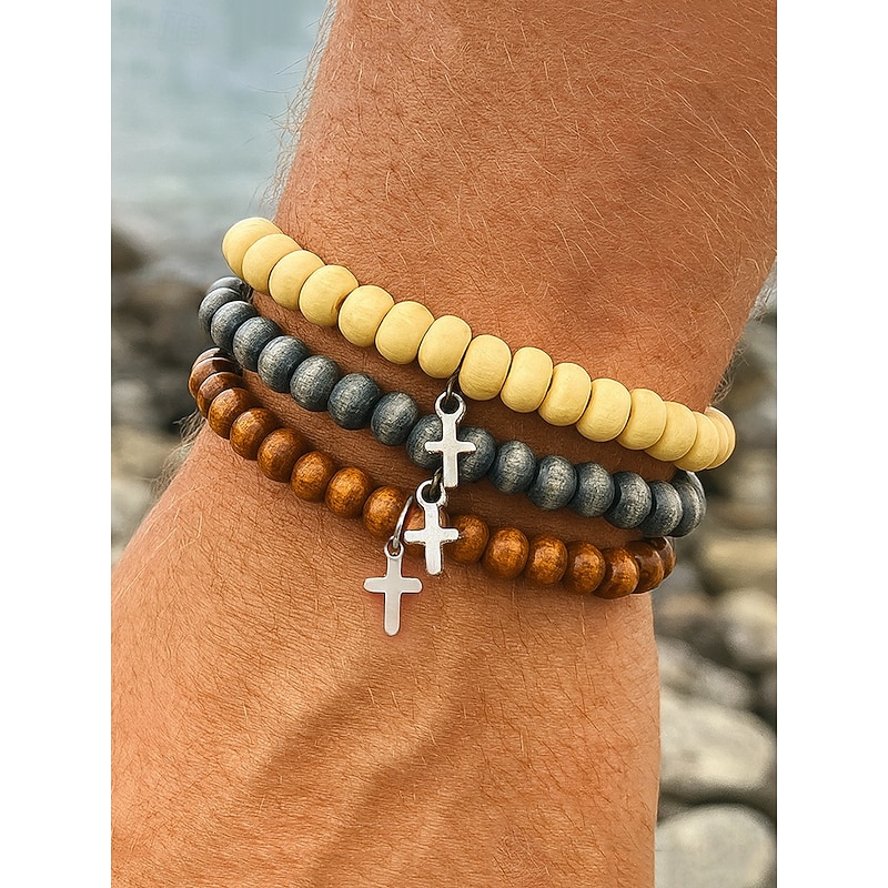 $7.99 - Men's Wooden Beaded Cross Bracelet Set – Natural Rustic Style Stretch Bracelets for Casual, Beach or Spiritual Wear 2025. Shop for cheap Men's Jewelry online? Buy at lightinthebox.com on sale today!