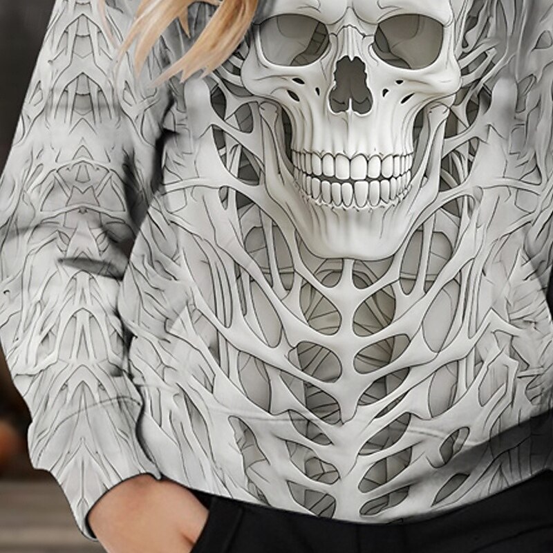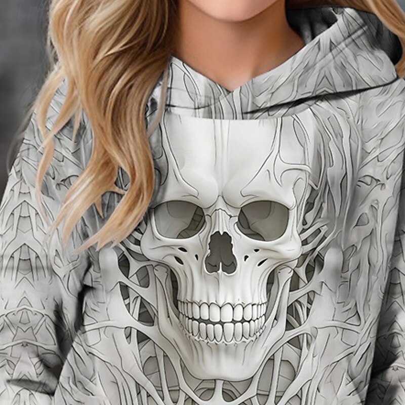 HOT ! Halloween Girls' 3D Floral Skull Hoodie Long Sleeve Fall Winter Fashion Adorable Basic Kids 4-12 Years Hooded Outdoor Casual Daily Regular Fit