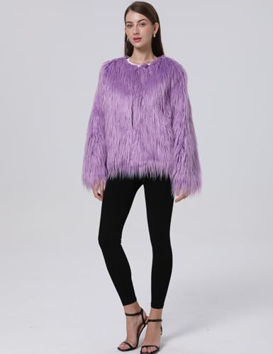 • Design: v neck furry jackets, cute purple fur coats, the fluffy and soft fabric provides both comfort and warmth.