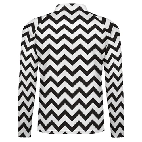 Black and White Zig Zag Lines Men's Rash Guard Long Sleeves Quick Dry Fishing Workout Shirts with Zipper 4
