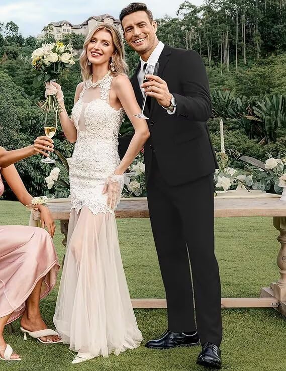 More information about Mens Suits 2 Piece Slim Fit Suits for Men Wedding Prom Suit Elegant Solid Formal Business Blazer Jacket Pants Set