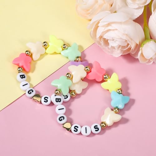 2pcs Big Sister Bracelets Butterfly Charm Colorful Rainbow Letter Beads Bangles Surfer Stretch Stackable Jewelry Accessories Gift for Big Sis Bestie Birthday 4