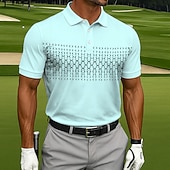 More information about Men's Polo Casual Sports Turndown Short Sleeve Fashion Leisure Geometic Golf 3D Print Buttons Summer Lake Blue White Blue Lilac-Pink Polo