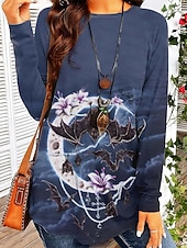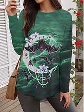 More information about Sarah Richter by Halloween Women's T shirt Bat Tribal Vintage Stylish Trendy Long Sleeve Crew Neck Round Neck Long Tops Daily Going out Print Red Blue Green Fall Winter