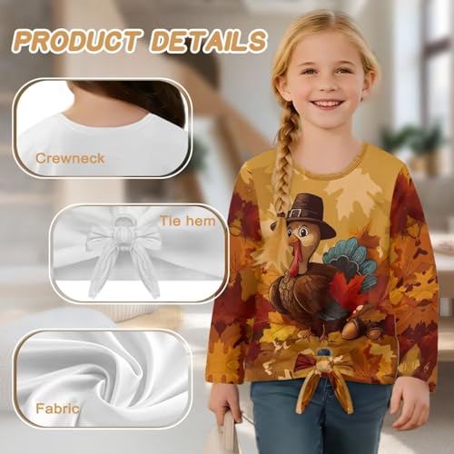 Belidome Kids Fall Shirts for Girls Long Sleeve Shirt with Front Tie Tees Top Novelty Graphic Holiday Outfits 5-12 Years 7
