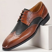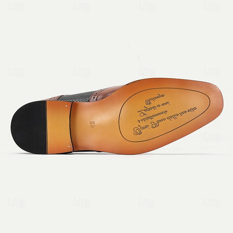 HOT ! Men's Premium Brown and Black Leather Lace-Up Shoes with Mesh Detailing for Business and Formal Occasions