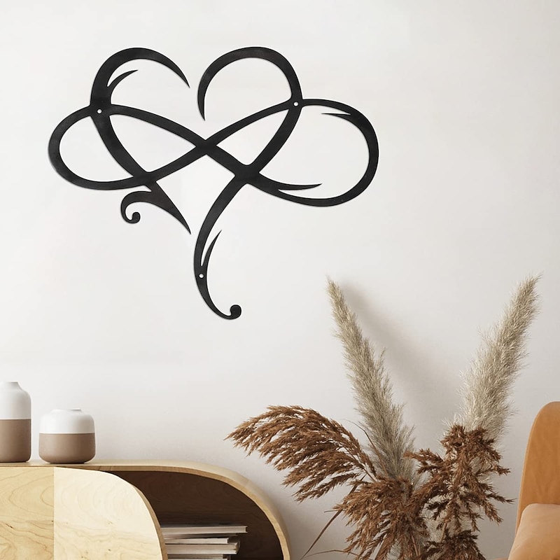 Infinity Heart Wall Decor, Unique Infinity Heart Metal Art Wall Decor Love Sign Steel Wall Plaques Bedroom Ornaments for Home Wedding Decor, Room Living Room Decoration 9
