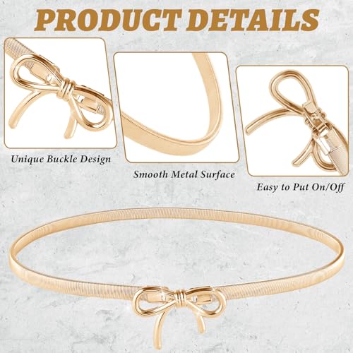 Skinny Metal Waist Belt for Women, Stretchy Belt Elastic Waistband Adjustable Chain Belt with Bowknot for Dress 3