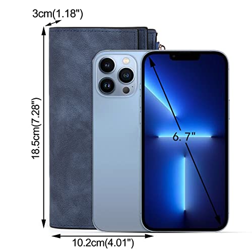 UTO RFID Wallet for Women PU Matte Leather Card Holder Organizer Zipper Coin Purse with Snap Closure Blue 6