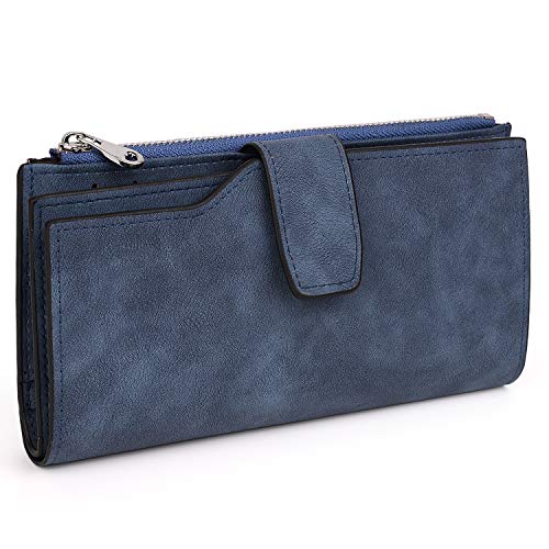 UTO RFID Wallet for Women PU Matte Leather Card Holder Organizer Zipper Coin Purse with Snap Closure Blue 1