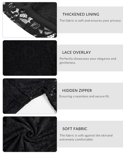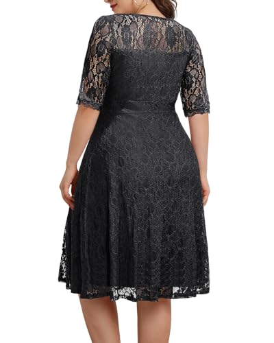Fabric type: 95% Nylon, 5% SpandexCare instructions: Hand Wash OnlyOrigin: ImportedClosure type: Zipper❤Features: This plus-size lace dress features gentle lace, a round neck, 1/2 sleeves, a high waist, and a midi length with a fit and flare style.❤Occasions: Perfect for a variety of occasions, including weddings, cocktail parties, graduations, evenings out, semi-formal events, dates, banquets, and other special occasions. Gift Ideas: Surprise your wife, girlfriend, or mother with this exquisite black dress as a gift for Valentine's Day, wedding anniversaries, Mother's Day, Thanksgiving, Christmas, birthdays, and more.❤Gift Ideas: Surprise your wife, girlfriend, or mother with this beautiful black dress as a gift for Valentine's Day, wedding anniversaries, Mother's Day, Thanksgiving, Christmas, birthdays, and more.❤Size Selection Tips: Please refer to our detailed size measurement guide to choose the most suitable size for you.❤Garment Care: Hand wash or Machine wash in Cold Water. Pls do not soak for a long time.
