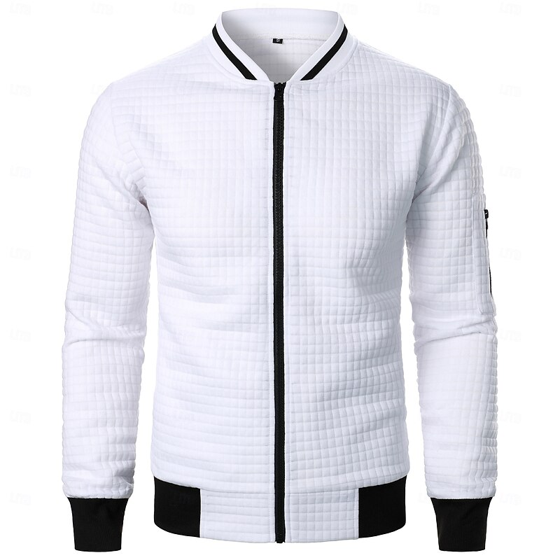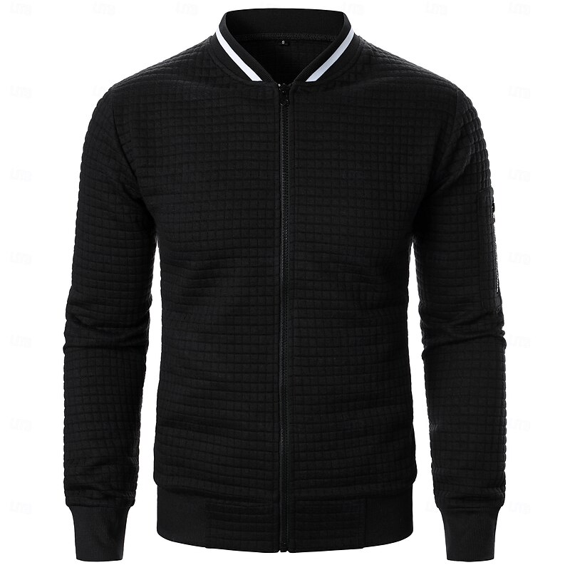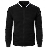 More information about Men's Zip Sweatshirt Sweat Jacket Full Zip Sweatshirt Black White Wine Army Green Navy Blue Standing Collar Plain Pocket Ribbed Textured Sports & Outdoor Daily Holiday Streetwear Casual Spring & Fall