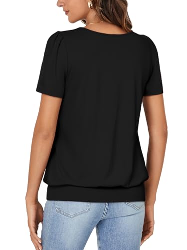 KIFOVEN Women’s Casual Short Sleeve V Neck T Shirt Summer Banded Bottom Loose Fit Tunic Tee Shirt Top 6