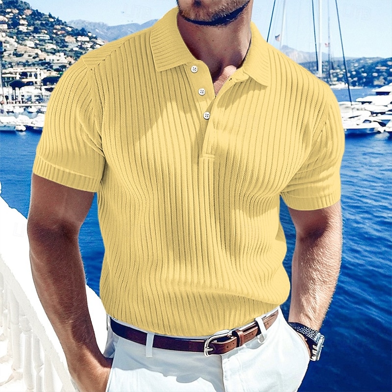 $21.99 - Men's Rib Knit Top Golf Polos Shirts Work Casual Lapel Ribbed Polo Collar Short Sleeve Basic Modern Color Block Buttons Knitted Summer Spring & Summer Regular Fit White Yellow Burgundy Navy Blue 2025. Shop for cheap Men's Classic Polo online? Buy at lightinthebox.com on sale today!