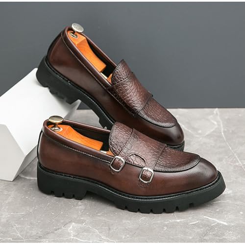 Mens Matt Leather Double Monk Strap Lug Sole Platform Business Loafers Modern Classic Slip on Chunky Heel Comfortable Non Slip Formal Dress Shoes for Wedding Work Party 6