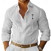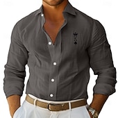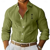 Men's Letter Printed Outdoor Vacation White Pink Green Gray Long Sleeve Lapel Spring Fall Clothing Apparel Button Up 13