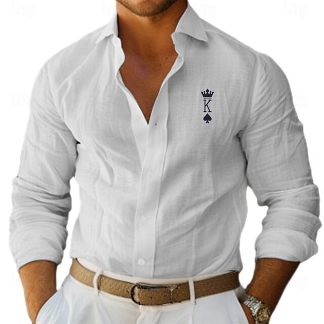 Men's Letter Printed Outdoor Vacation White Pink Green Gray Long Sleeve Lapel Spring Fall Clothing Apparel Button Up 11