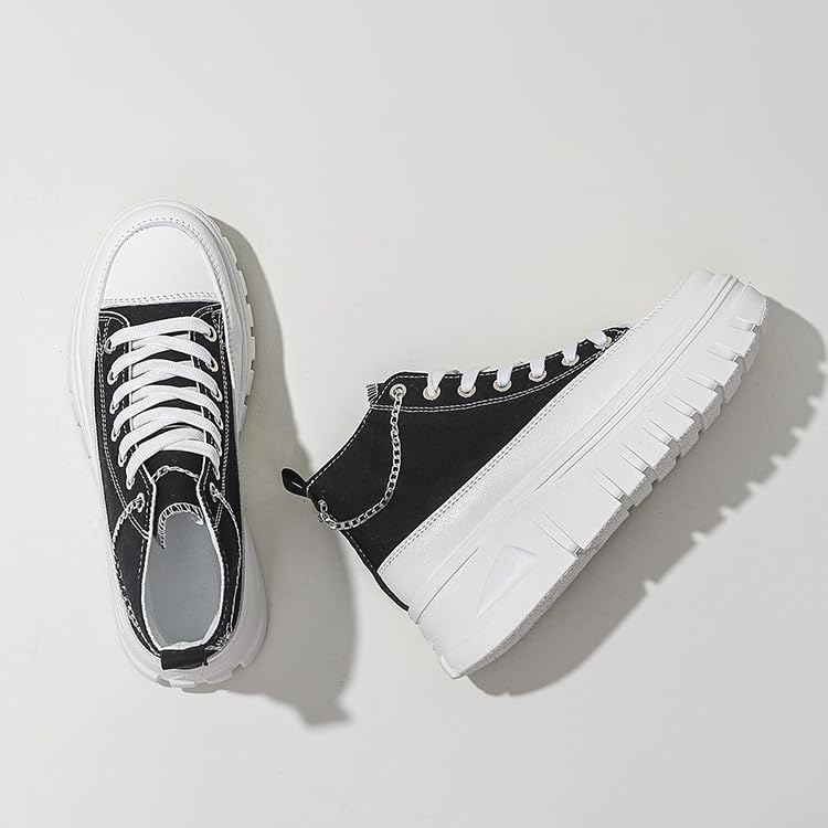 Womens Platform Sneakers Canvas Sneakers for Women Casual Canvas Shoes for Walking with Chain Platform Wedges Shoes (Black,8)