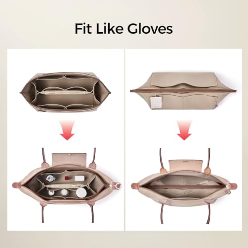 ZTUJO Purse Organizer Insert For Le Pliage, Compatible with Longchamp Le Pliage Shoulder Bag S/L, Top Handle S/M,Energy S/L, Xtra S, Longchamp Organizer Insert (Beige, Large) 4