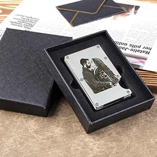 awofer Custom Photo Wallet Engraved Card Holder Personalized Gifts for Men Aluminum Picture Wallets with Money Clip Gifts for Husband Boyfriend Dad Son Grandpa Groomsmen Bestman