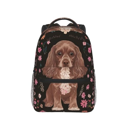 HOT ! Men Women Lightweight Floral Cocker Spaniel Chocolate Brown Backpack Large Capacity Carry On Bag With Padded Straps for Sports Work Walking Cycling
