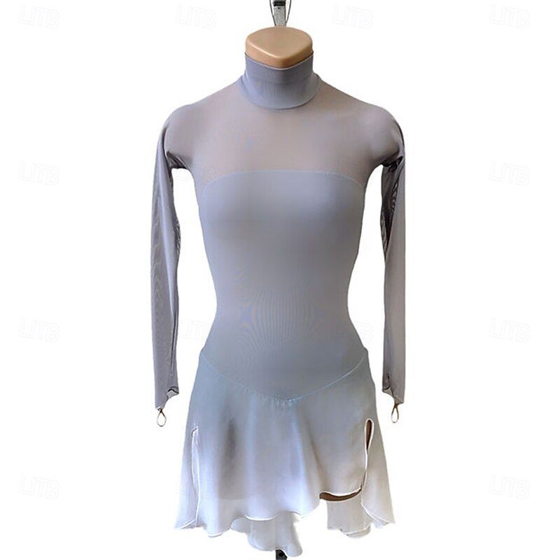 More information about Figure Skating Dress Women's Girls' Ice Skating Dress Black Light Grey Patchwork Open Back Mesh High Elasticity Training Competition Skating Wear Classic Crystal / Rhinestone Long Sleeve Ice Skating