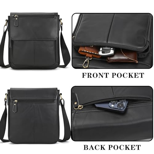 Small Leather Mens Purse Bag, Genuine Leather Messenger and Shoulder Bag for Men Zipper Pockets, Men Satchel Handbag 6