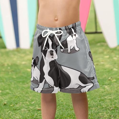 Pigsaly Boys Swim Trunks Cartoon Three Boston Terrier Dog Boys Board Shorts Swimsuit Swimwear Summer Bathing Suit 5T Multicolor 5