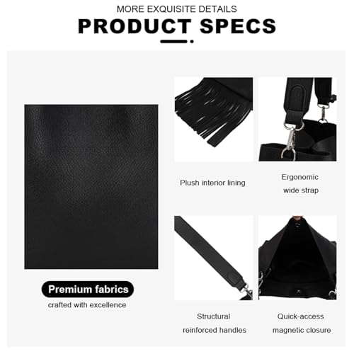 Black Faux Leather Hobo Shoulder Bag with Tassel, Stylish Purse & Handbag for Women, Lightweight Large Tote with 2PC 4
