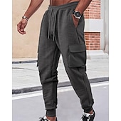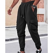 More information about Men's Cargo Sweatpants Sweatpants Joggers Trousers Jacquard Drawstring Pocket Plain Comfort Sports Outdoor Daily Fashion Casual Black White Micro-elastic