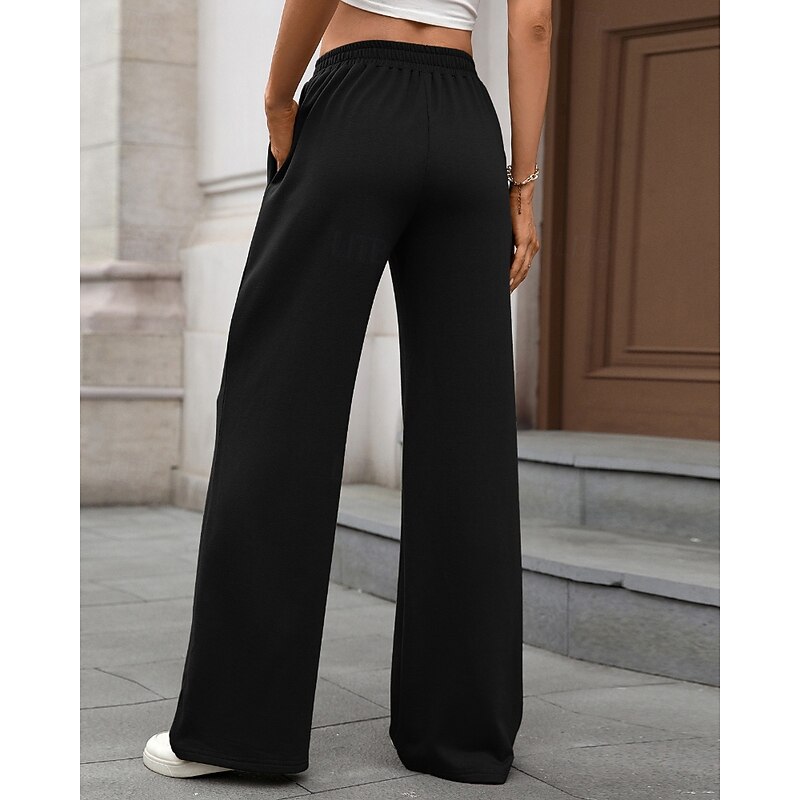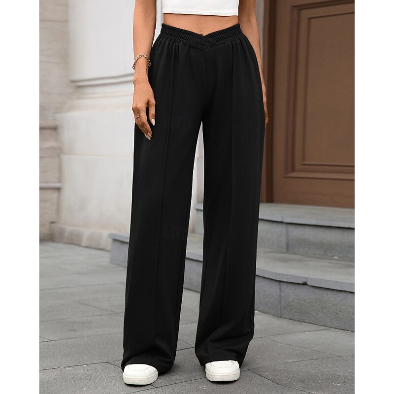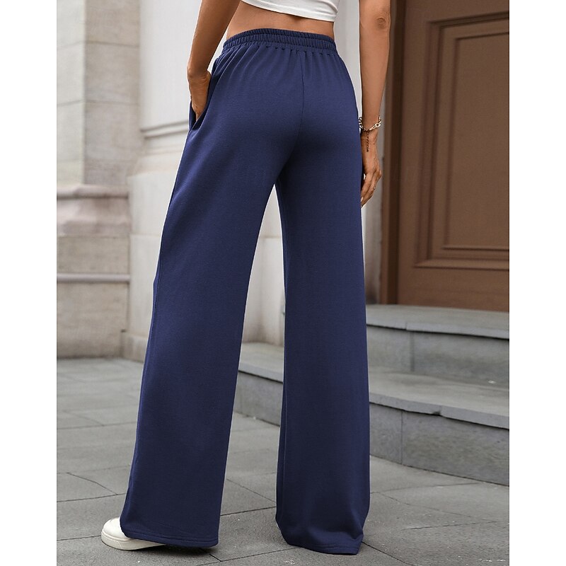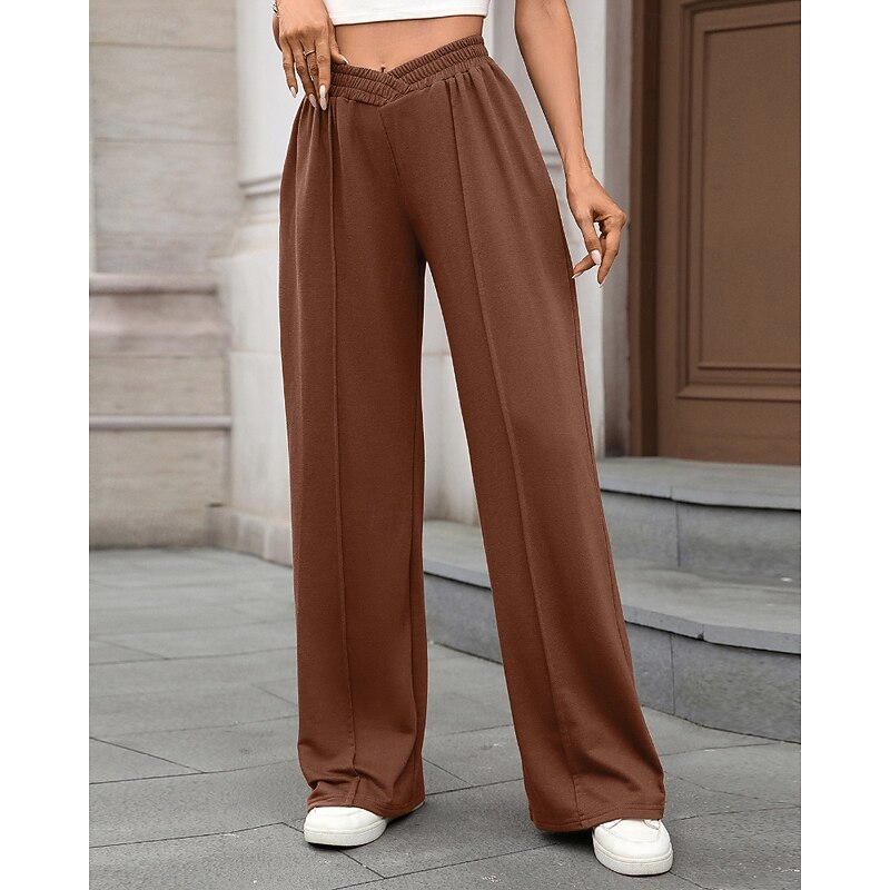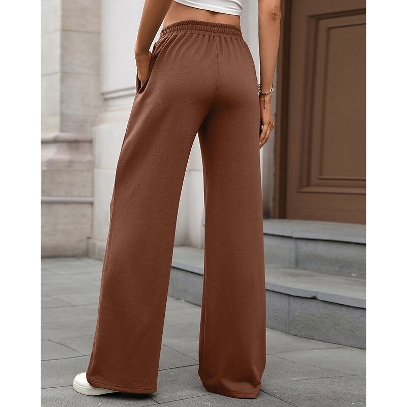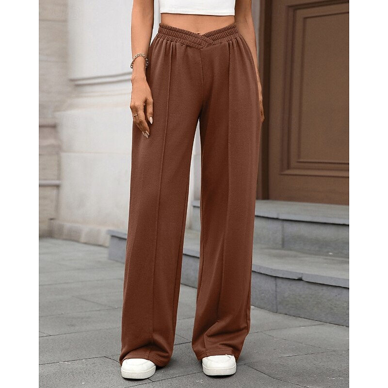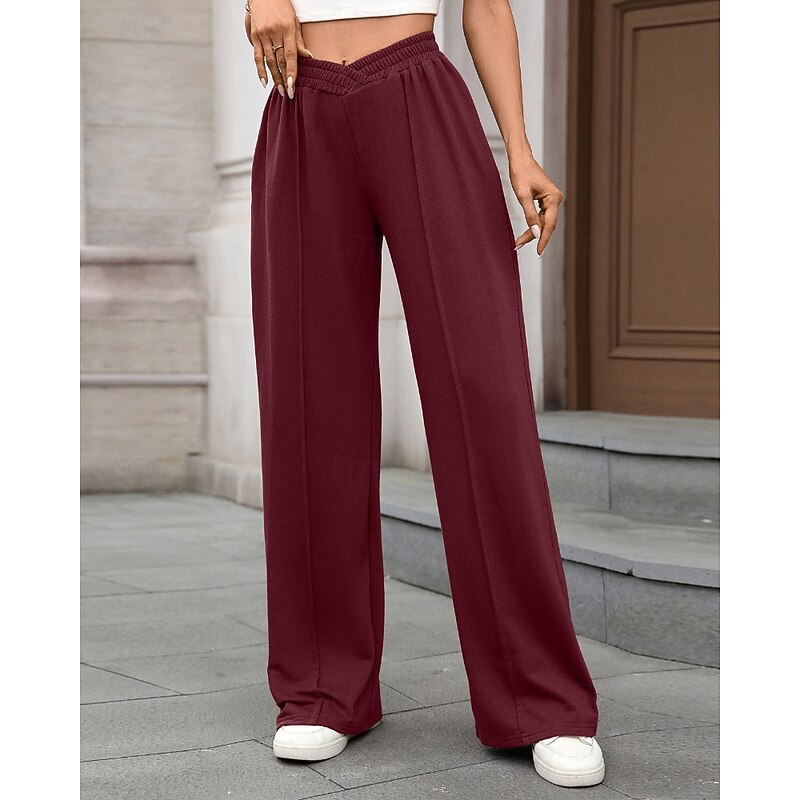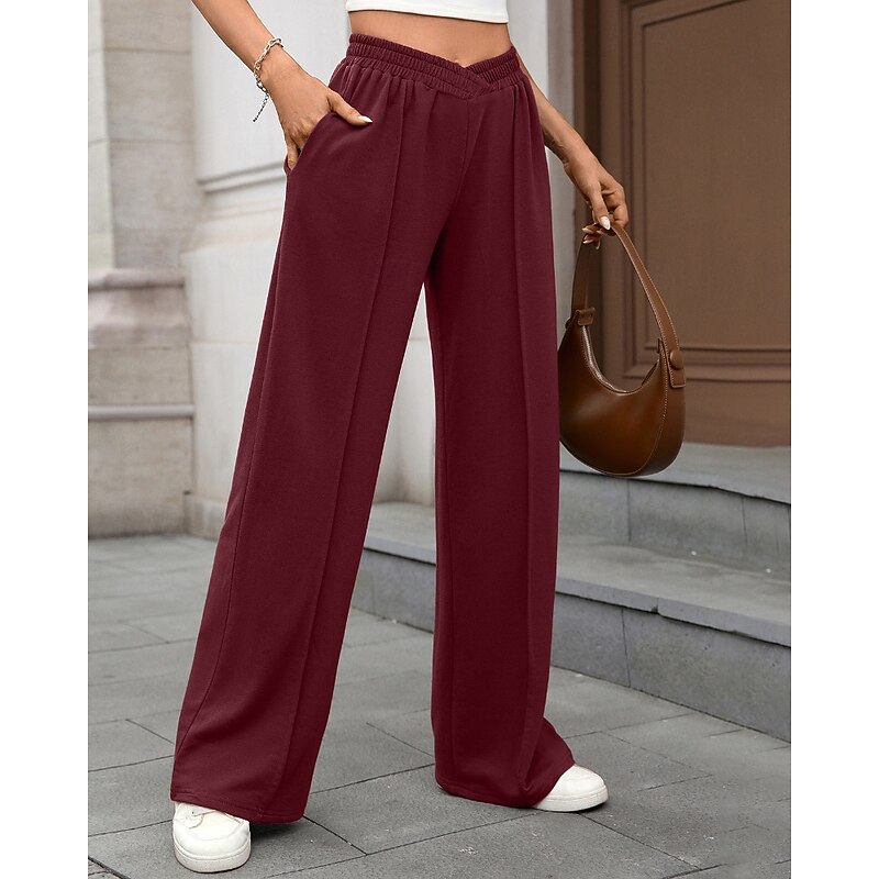 Women's Slacks Straight Streetwear Casual Full Length Natural Plain Pocket Elastic Waist Comfortable Street Holiday Weekend claret Navy Black Army Green Fall Regular Fit 24