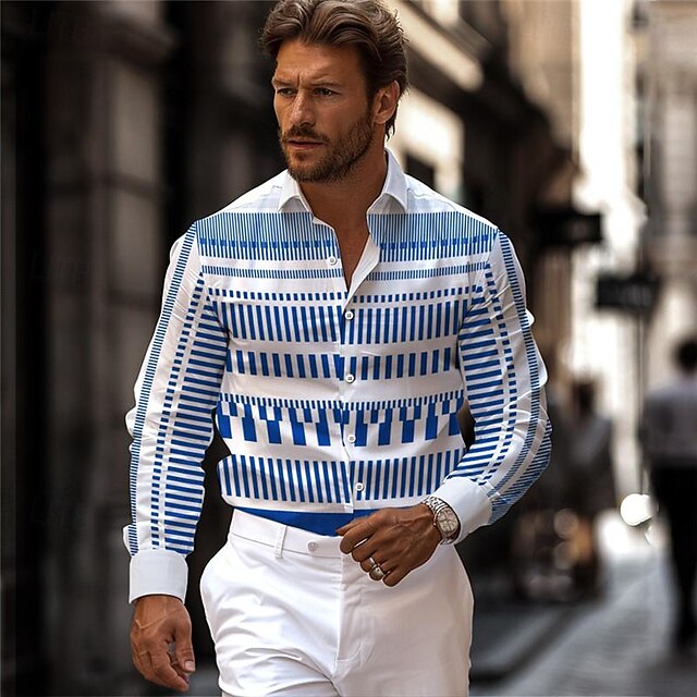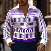 More information about Men's Stripe Geometric Pattern Geometry Printed Shirts Long Sleeve Business Casual Street Wear to work Daily Wear Spring & Summer Turndown Print Button-Down Blue Purple