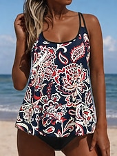 More information about Women's Swimsuits Tankini 2 Piece Cheeky Swimsuit Backless Tummy Control High Waist Slim Vacation Beach Wear Paisley U Neck Sleeveless Bathing Suits