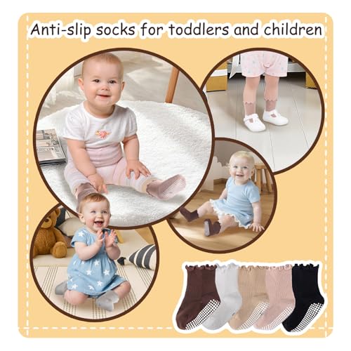 Ruffle Socks for Girls,Baby Girl Sock Grip Pilates Socks Toddler Sock Non Slip Ballet for Girls with Grips Low Cut 5