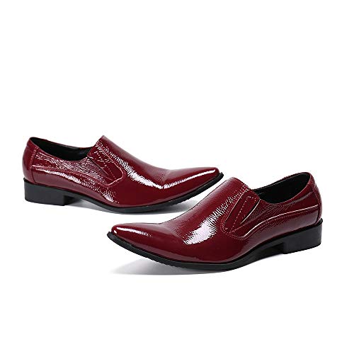 Patent Leather Oxford for Men Formal Shoes Slip On StyleGenuine Leather Block Heel Easy Care Solid Colors Men's Leather Shoes 5