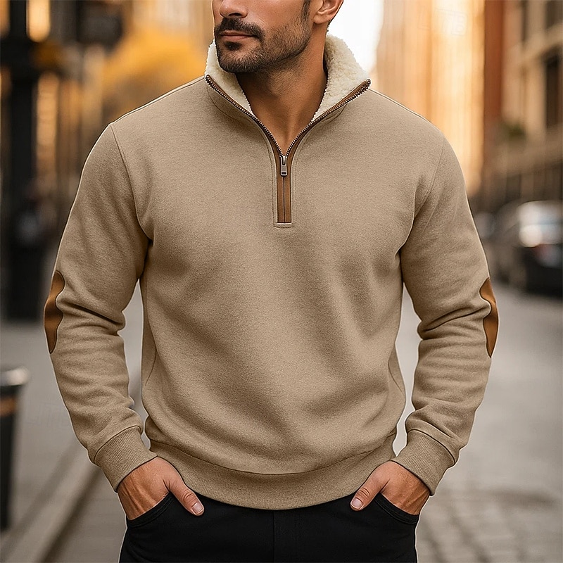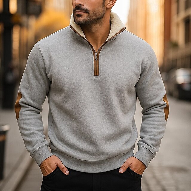 More information about Men's Sweatshirt Fleece Hoodie Quarter Zip Sweatshirt Black Navy Blue Camel Light Grey Dark Gray Standing Collar Plain Quarter Zip Sports & Outdoor Casual Daily Streetwear Cool Designer Winter