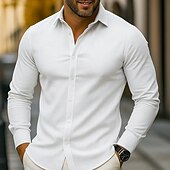 HOT ! Men's Dress Shirt Corduroy Shirt Plain Wedding Outdoor Light Blue White Yellow Navy Blue Long Sleeve Turndown Summer Spring Clothing Apparel Plain