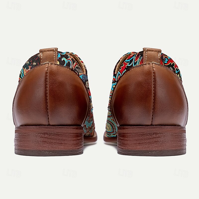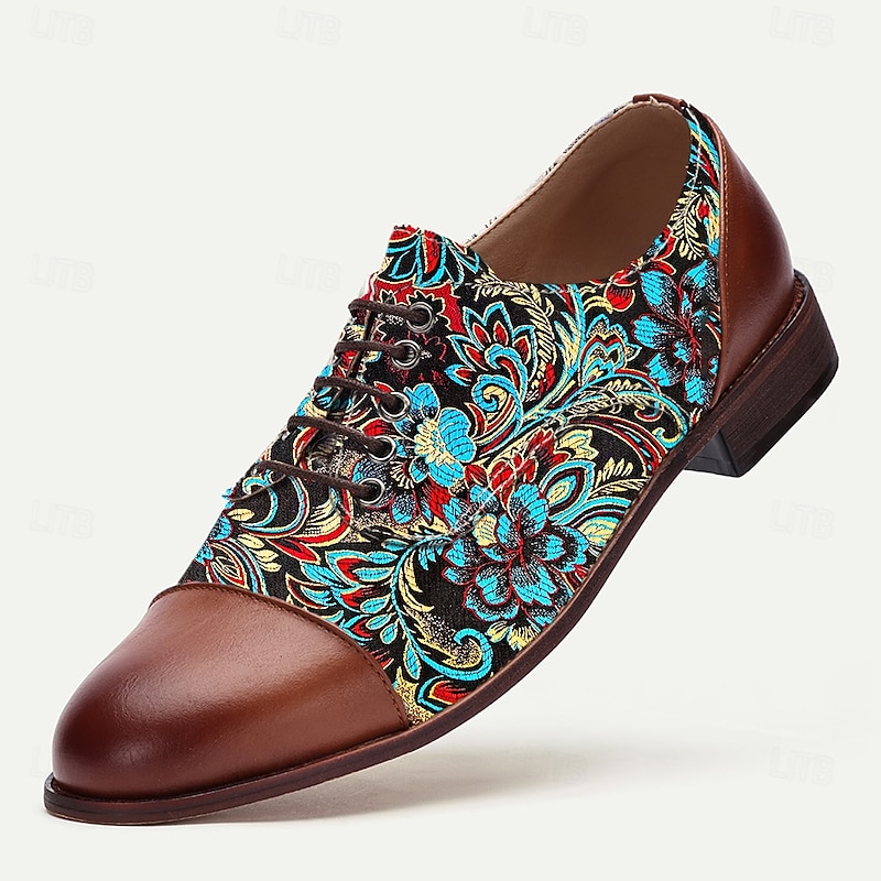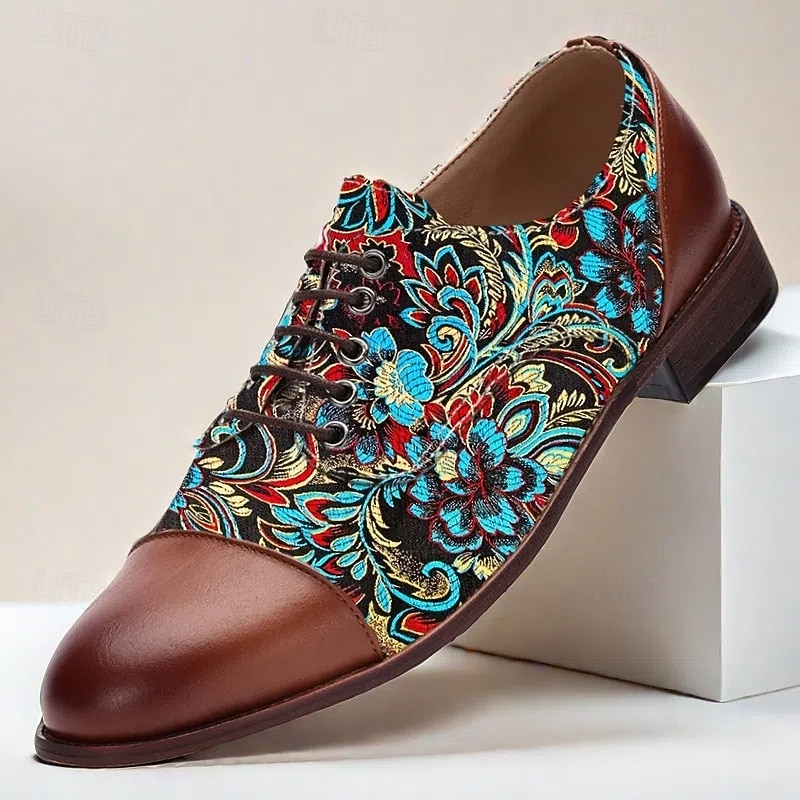 HOT ! Men's Brown Faux Leather Oxford Shoes with Colorful Paisley Pattern | Comfortable and Stylish for Casual Outings