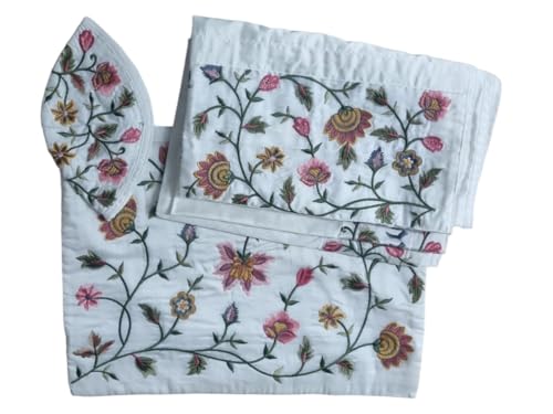HOT ! New Elegant Tallit for Women - Full Floral Embroidery Prayer Shawl Set - Artificial Silk Polyester - 78"x20" - Jewish Gift