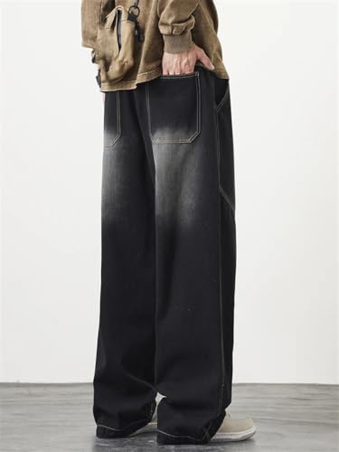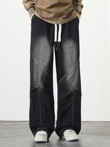 More information about Men's Jeans Drawstring Wide Leg Straight Washed Cotton Denim Pants Casual Baggy Trousers