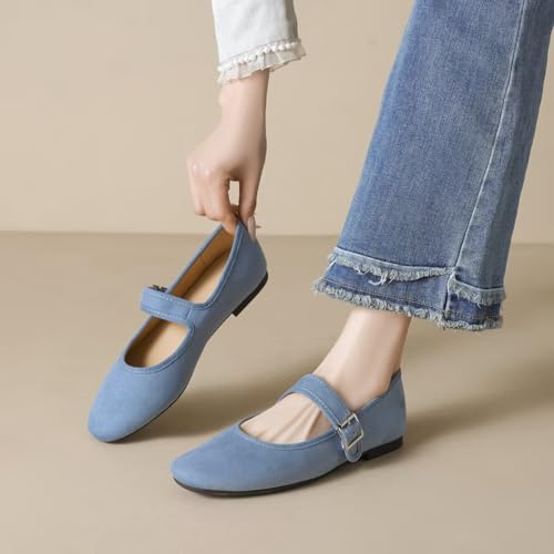 ChaiRong Zhou Women Mary Jane Flats Round Toe Suede Shoes Buckle Straps Low Heel Shoes for Ballet Casual Party Daily Wear 6